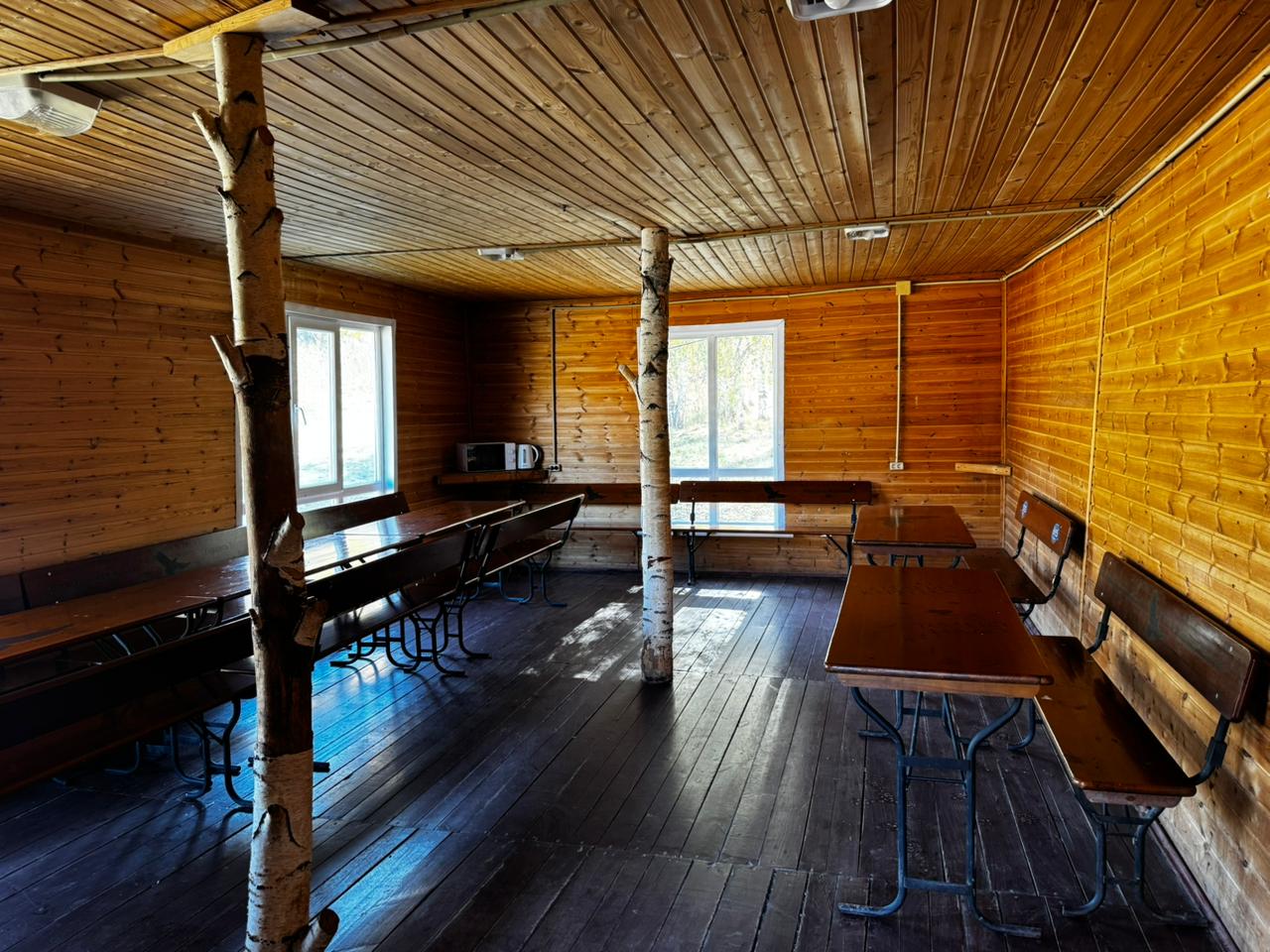 Светлая и просторная тёплая беседка с печным обогревом. Расположена вдали от основной части базы, в берёзовой роще. В 50 метрах от беседки расположен пруд. Летом в пруду водится Форель. Зимой катание на стьюбах, трасса расположена в 100 метрах от беседки. Беседка рассчитана на компанию до 40 человек. Отлично подходит для корпоративного или семейного отдыха. У беседки расположен мангал. Внутри: деревянные столы со скамьями, вешалка для одежды, микроволновая печь, электрический чайник, бочка с питьевой водой. Также за дополнительную плату вы можете арендовать: шампура, решетку для барбекю, дрова, казан и подставку. В будние дни – стоимость беседки дешевле.